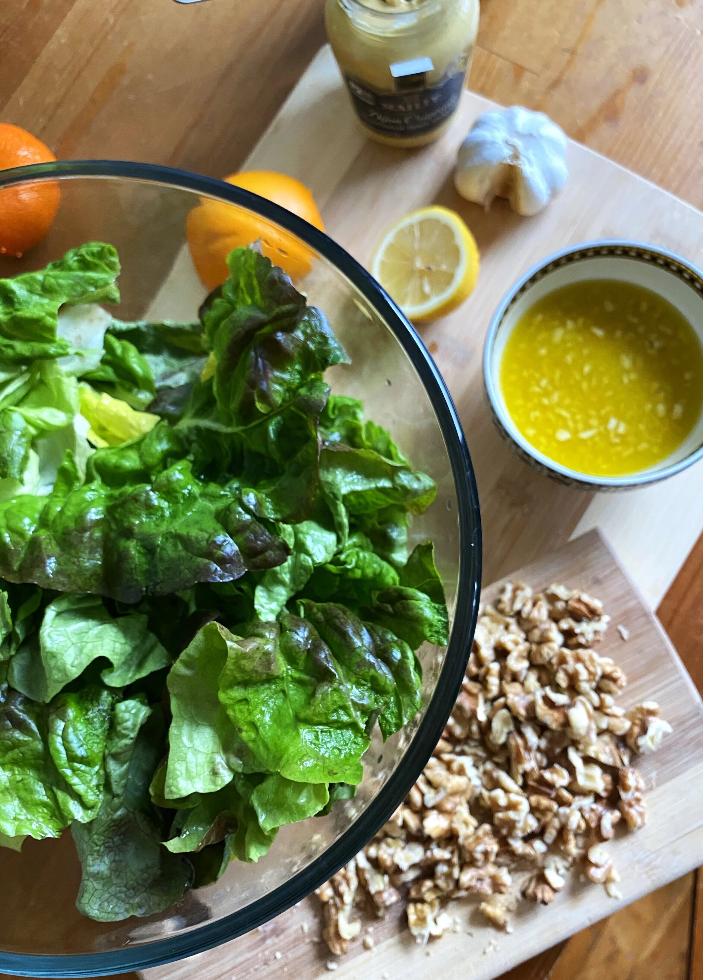 A little sweet, a little tangy, and a bit spicy & salty…just like me! Seriously though, I want to put this dressing on errrrthang! It’s my favorite on a simple red leaf salad with walnuts (and radishes, if you have’m), but its also great on boiled potatoes & green beans, tossed with roasted cauliflower, or on just about anything. This recipe is enough for a big dinner sized salad (or for 1, if you’re me), so feel free to do the calculations to make a big ol’ batch to keep in an air-tight container in the fridge, for up to a week. Here she is folks….THE DRESSING! Don’t forget to post on Insta and tag me @katiewebbernyc!